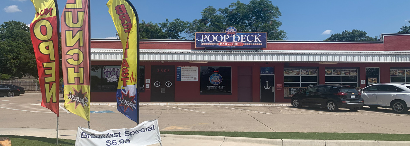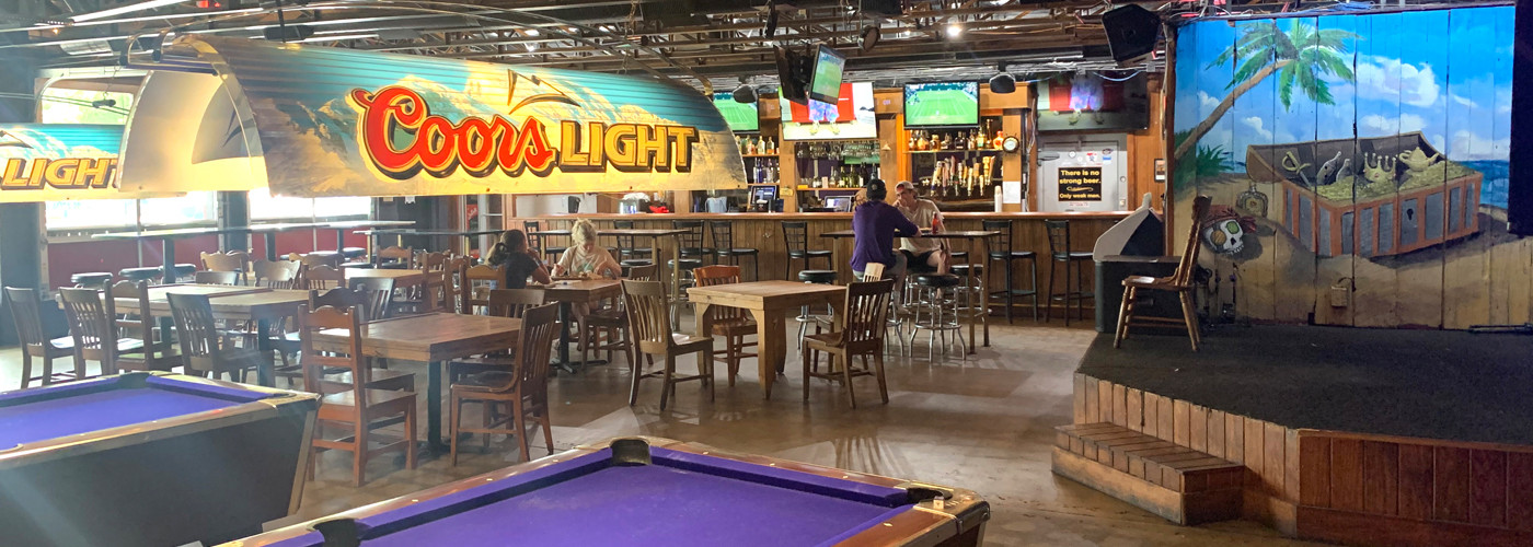 The Poop Deck was established in 1970 and became the Poop Deck Bar and Grill in April of 2021. The new location offers the same great bar service along with a full menu including Appetizers, Salads, Handhelds & Baskets, Entrees, Desserts and a Late Night Bar Menu on Karaoke nights.